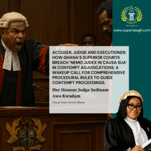 The rule, nemo judex in causa sua (no one should be a judge in their own cause), stands as a foundational norm of natural justice, enshrined in both the common law tradition and Ghana’s constitutional framework. Despite its paramount importance, Ghana’s Superior Courts continue to grapple with a troubling practice: Justices adjudicating over contempt cases arising from their own proceedings. This practice fundamentally undermines judicial impartiality by merging the accusatory and adjudicative functions, thereby compromising the integrity of the judicial process.